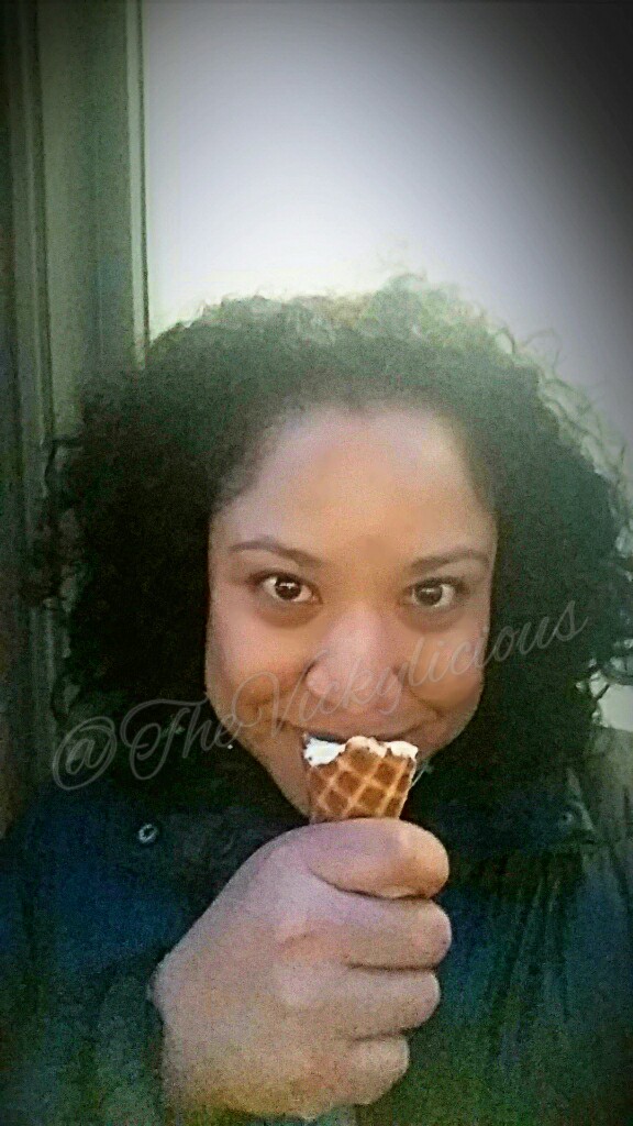 (<—- A makeup-free, spa-faced me getting ready to gobble up the last bit of my delicious ice cream cone)